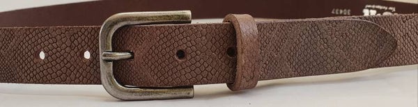 Echt lederen riem vervaardigd van duurzaam nerf leder. De taupe kleurige riem is 3 cm breed en heeft een mooie reptielenprint.
