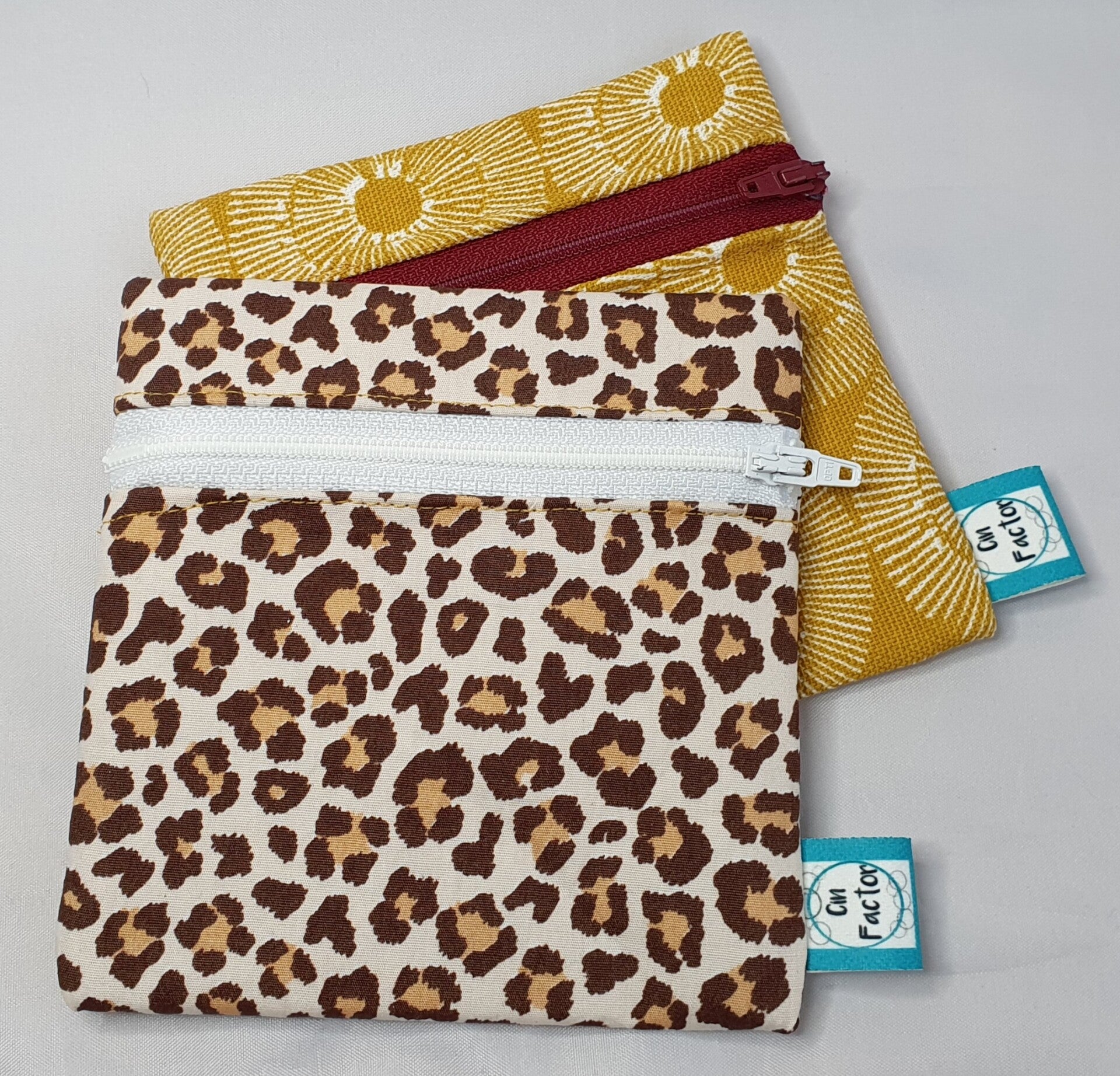 Een vierkant portemonneetje van 12 x 12 cm met het hippe luipaard printje. De buitenkant is bruin/beige en de binnenzijde is groen/zwart/rood van kleur.