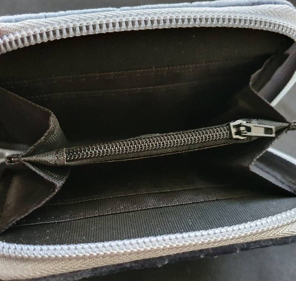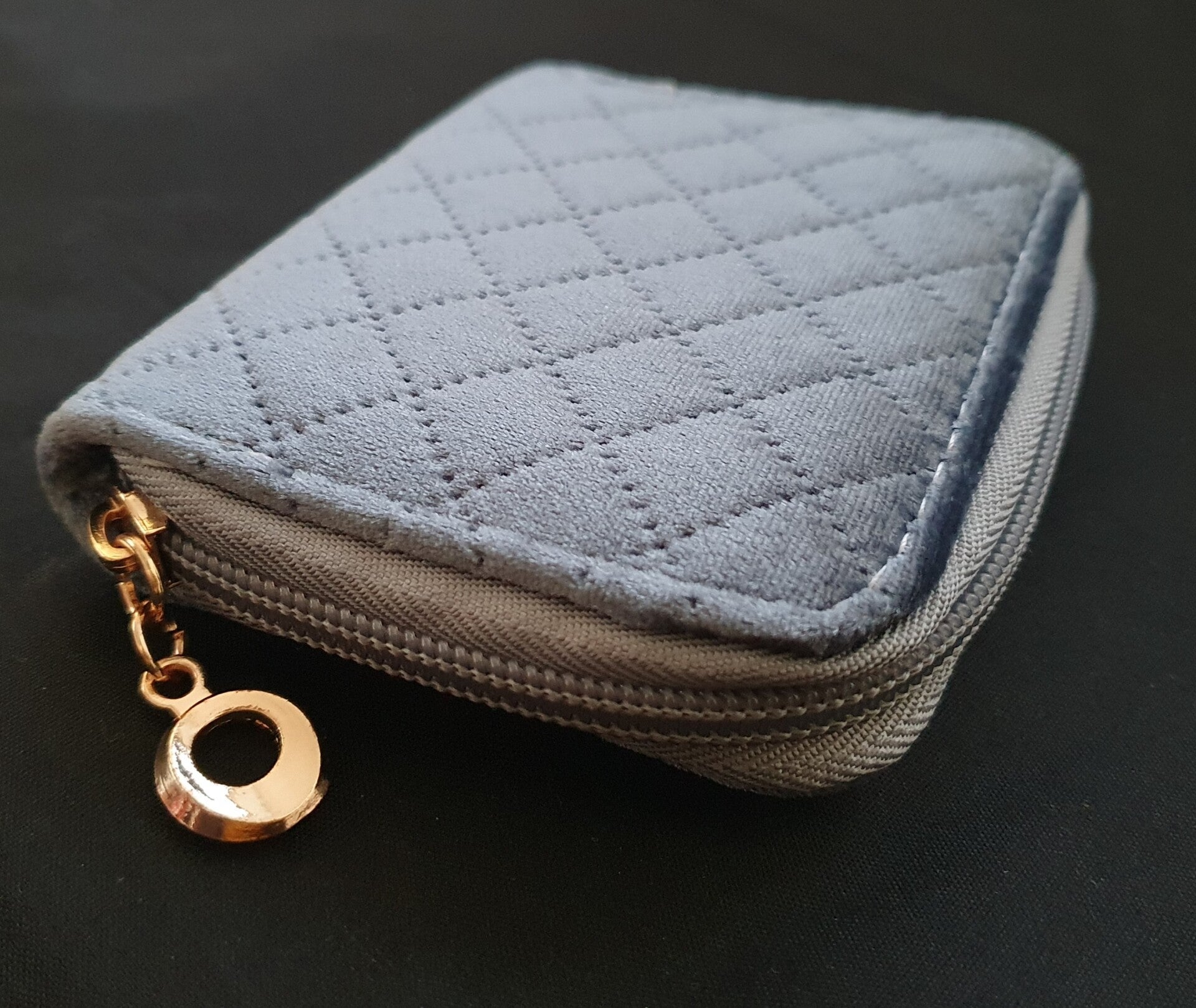 Lief, fluweelzachtzacht, blauw portemonneetje met een klein ritsvak en ruimte voor pasjes. Afm. 11(b) x 9(h) x 2(d) cm